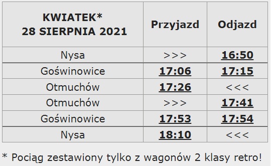 KWIATEK: Przejedzie przez stację Goświnowice 17:06 i z powrotem z Otmuchowa pojawi się na wysokości Goświnowic o 17:53